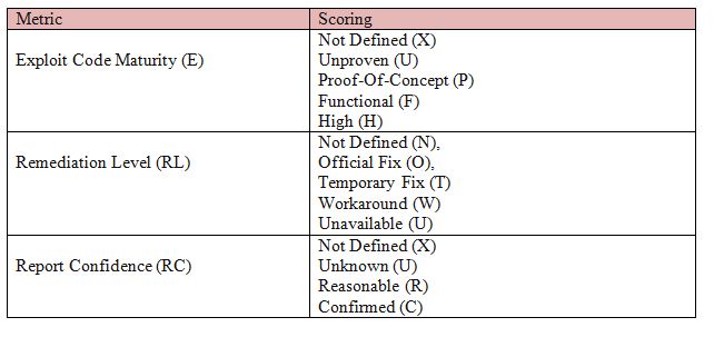 Ranjivost se procjenjuje sa tri aspekta, baznog, vremenskog i u odnosu na okruženje: Base Metrics, Temporal Metrics, i Environmental